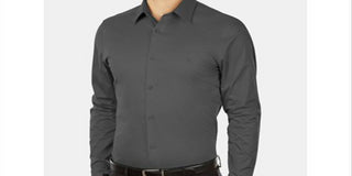 CALVIN KLEIN Mens Gray Collared Slim Fit Cotton Dress Shirt 2XL