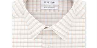 Calvin Klein Men's Slim Fit Stretch Collar Check Dress Shirt Orange Size 15.5X34X35