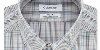 Calvin Klein Men's Slim-Fit Stretch Performance Plaid Dress Shirt Gray Size 17-32-33-XL