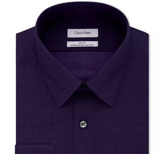 Calvin Klein Steel Men's Slim Fit Non Iron Performance Herringbone Point Collar Dress Shirt Purple Size 16X34-35