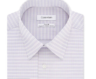Calvin Klein Men's Steel Classic/Regular-Fit Non-Iron Performance Stretch Check Dress Shirt Purple Size 17X34-35