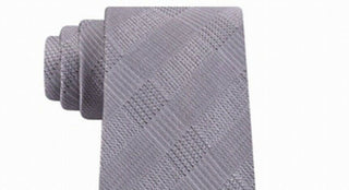 Calvin Klein Men's Slim Tonal Plaid Silk Tie Gray Size Regular