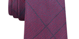 Calvin Klein Men's Slim Knit Plaid Silk Tie Red Size Regular