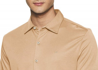 Calvin Klein Men's Short Sleeve Liquid Touch Button Up Polo Shirt Brown Size Small
