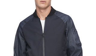 Calvin Klein Men's Colorblocked Mix-Media Bomber Jacket Charcoal Size Large