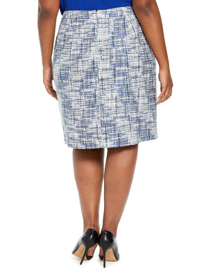 Calvin Klein Women's Tweed Fringe-Trim Pencil Skirt Blue Size 14