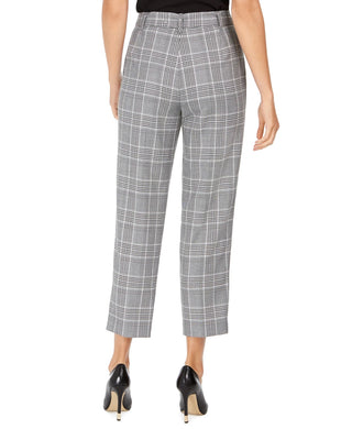 Calvin Klein Women's Plaid Tie-Waist Pants Silver Size 8