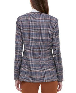 Calvin Klein Women's Plaid One-Button Blazer Blue Size 16