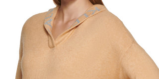 Calvin Klein Women's Knit Pocketed Stretch Logo Graphic Long Sleeve V Neck Hoodie Sweater Gold Size X-Large