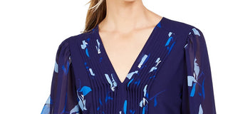 Calvin Klein Women's Floral Printed Pintuck-Pleated Blouse Blue Size Small