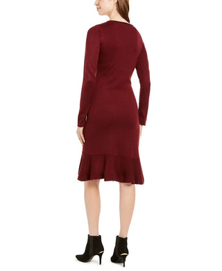 Calvin Klein Women's Ruffled Sweater Dress Wine -Size Small