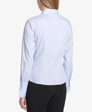 Calvin Klein Women's Petite Cotton Button-Front Shirt Blue Size 8 P