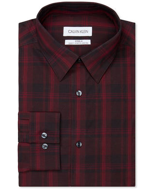 Calvin Klein Men's Steel Regular Fit Stain Shield Performance Dress Shirt Red Size 15X32-33