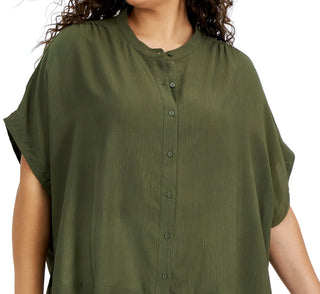 Calvin Klein Women's Cotton Flutter Sleeve Top Green Size 2X
