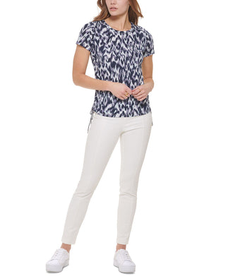 Calvin Klein Women's Printed Side Ruched Top Blue Size Medium