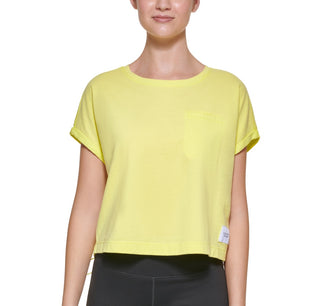 Calvin Klein Women's Bungee Hem Pocket Cotton T Shirt Yellow Size Large