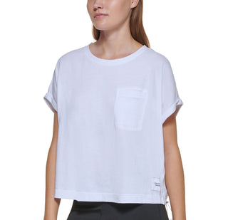 Calvin Klein Women's Bungee Hem Pocket Cotton T Shirt White Size Large