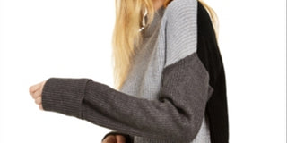 Calvin Klein Women's Mock Neck Colorblocked Sweater Gray Size X-Large