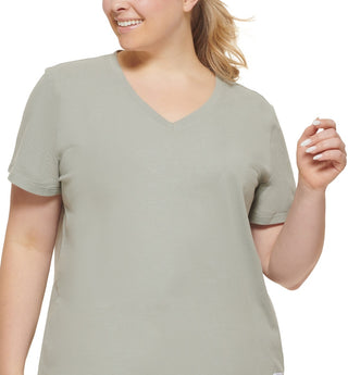 Calvin Klein Women's Logo Patch V Neck T-Shirt Green