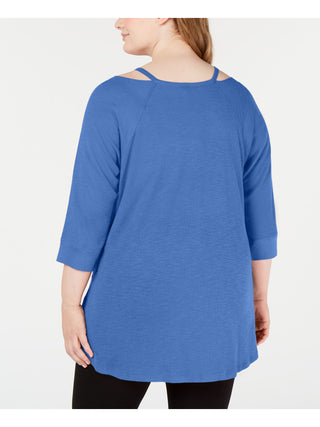 Calvin Klein Women's Cold Shoulder 3/4 Sleeve Jewel Neck Hi Lo Top Blue Size 3X