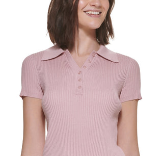 Calvin Klein Women's Ribbed Polo Sweater Pink Size Petite Small