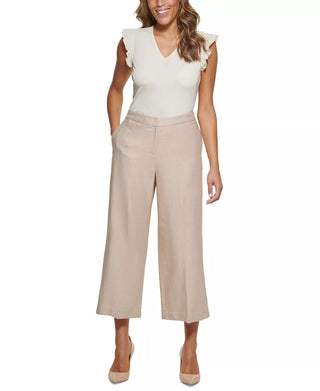 Calvin Klein Women's Plus Linen Cropped Wide-Leg Pants Beige Size 14W