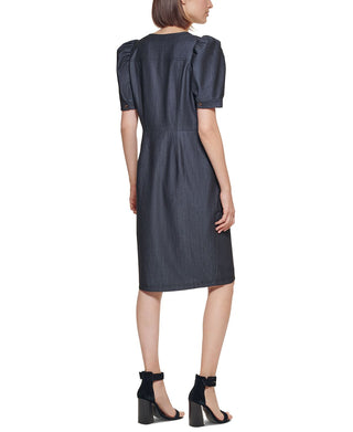 Calvin Klein Women's Denim Puff Sleeve Sheath Dress Blue Size 10