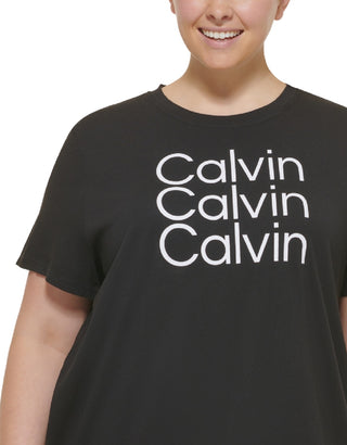 Calvin Klein Women's Triple Logo T Shirt Black Size 3X