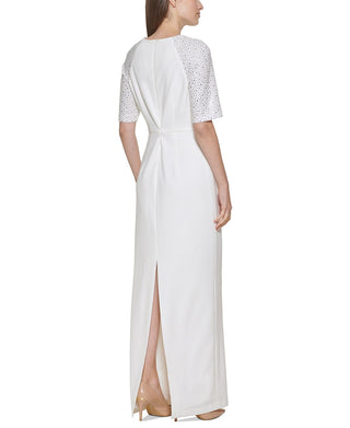 Calvin Klein Women's Rhinestone Embellished Knot Waist Dress White Size 16