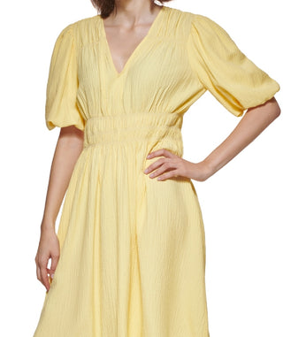 Calvin Klein Women's Smocked Waist Gauze Dress Yellow Size 16