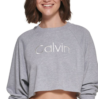 Calvin Klein Women's Embroidered Logo Cropped Sweatshirt Gray Size Small