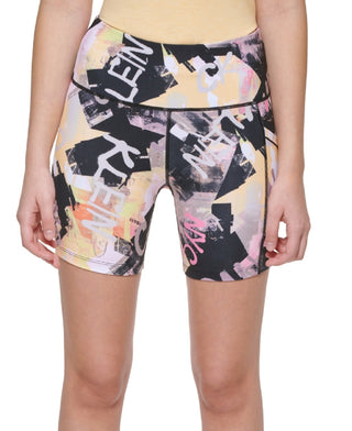 Calvin Klein Women's Printed Side Pocket Bike Shorts Black Size X-Large