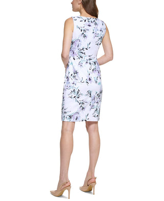 Calvin Klein Women's Floral Print Above Knee Sheath Dress White Size 4Petite