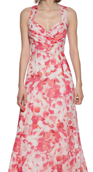 Calvin Klein Women's Floral Strappy Back Gown Pink Size 4