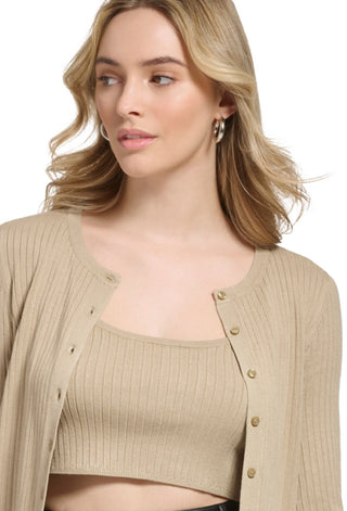 Calvin Klein Women's X Fit Cropped Camisole & Cardigan Sweater Brown Size Small