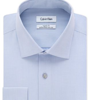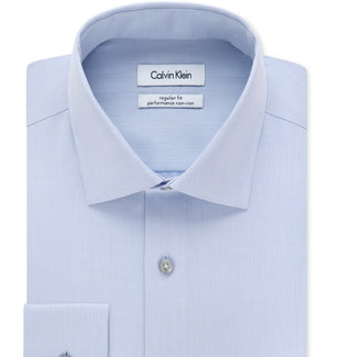 Calvin Klein Men's Steel Classic Fit Non Iron Performance Herringbone Spread Collar Dress Shirt Blue Size 16.5X32-33
