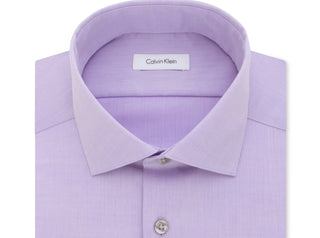 Calvin Klein Men's Slim Fit Non Iron Performance Herringbone French Cuff Dress Shirt Purple Size 15X32-33