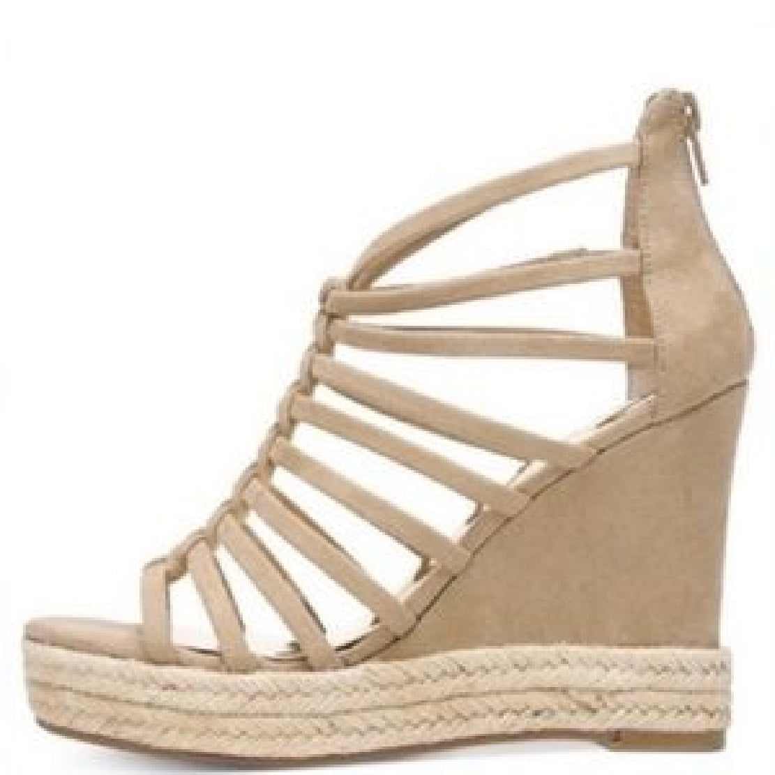 Carlos by Carlos Santana takes an ultra strappy design through the roof atop the sky-high platform wedge heel on these Camilla espadrille dress sandals.| 4-1/4 wedge heel| 1 platform| Round-toe T-strap platform wedge espadrille sandals| Zipper closure at back; knotted details at T-strap| The Wedge featured on The It List| fiber fabric upper; manmade sole