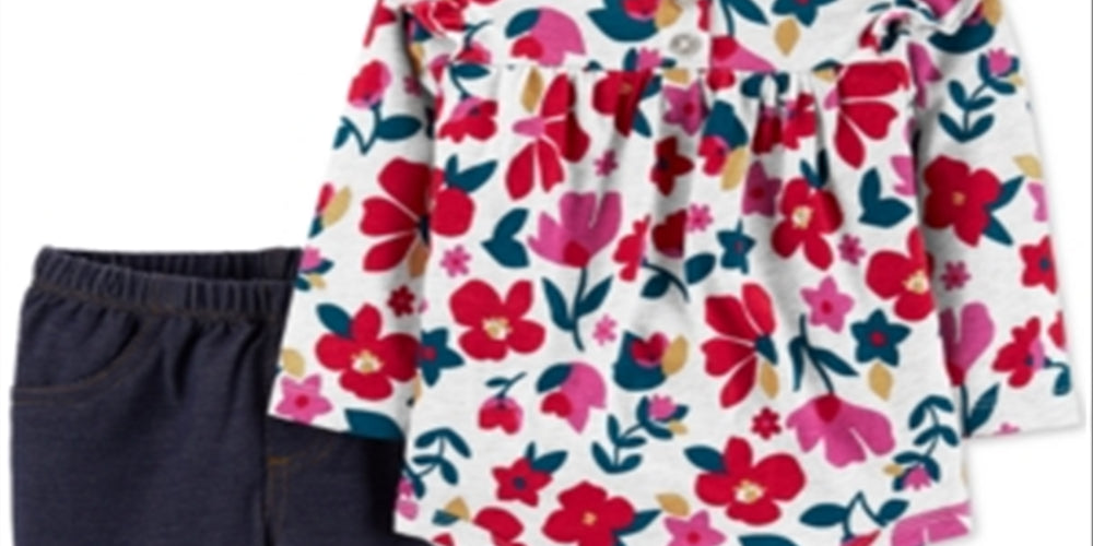 Carter's Girl's Infant Floral Ruffle Bodysuit Pocket Pants Pink Size 9MOS