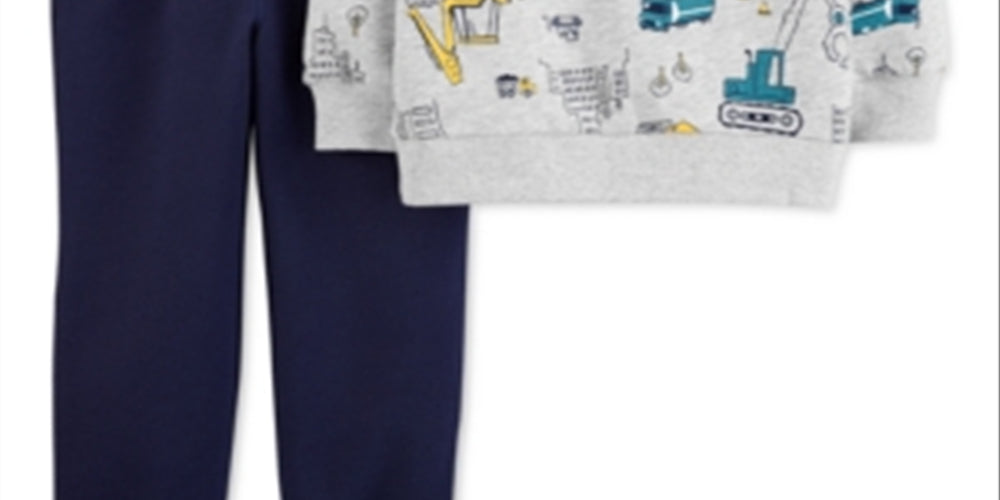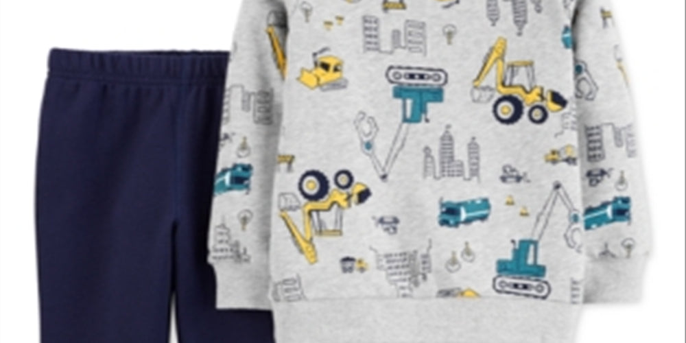 Build up his stylish essentials with the construction theme featured on this comfortable sweatshirt and joggers set from Carter s