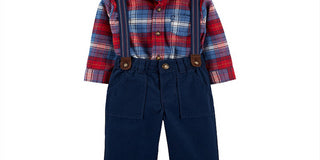 Carter's Boy's' Infant Bodysuits Plaid Shirt Pants Blue Size 18MOS