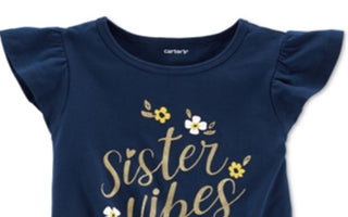 Carter's Toddler Girl's Vibes Print Tie Front Cotton T-Shirt Blue Size 3T