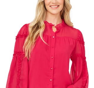 CeCe Women's Ruffle Detail Crinkled Chiffon Blouse Pink Size X Large