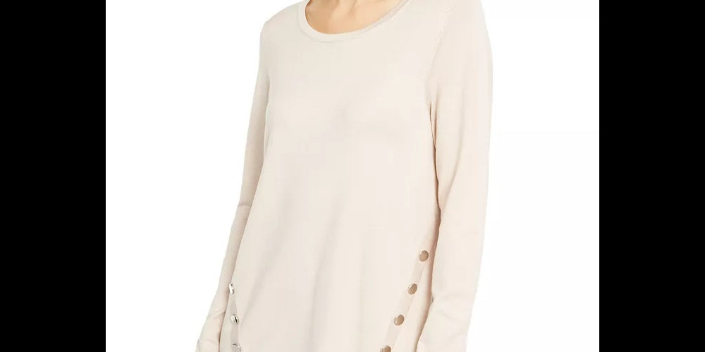 Alfani Women's Ribbed Embellished Pullover Sweater Beige Size Small