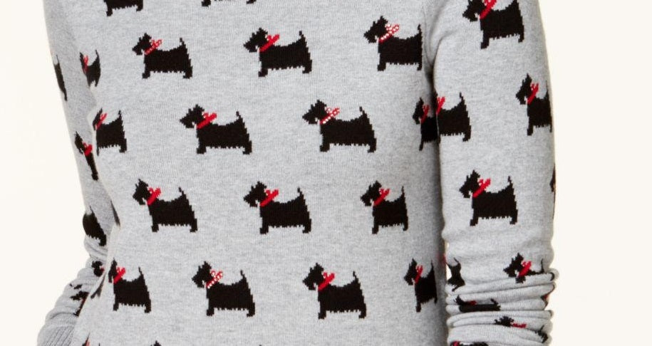 Charter Club Women's Embellished Printed Sweater Gray Size P/SM