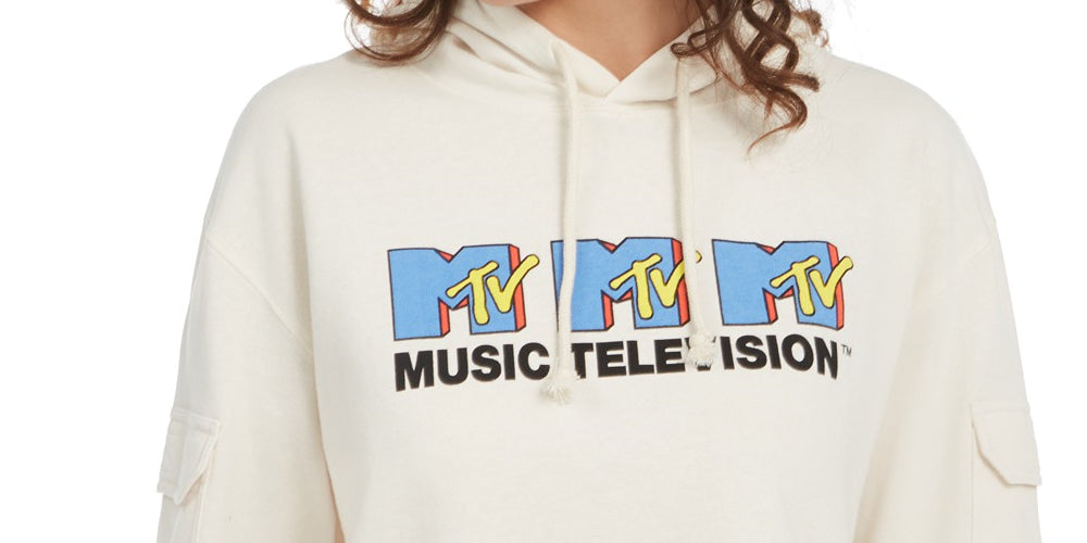 Freeze 24-7 Juniors' MTV Graphic Hoodie Beige Size Small