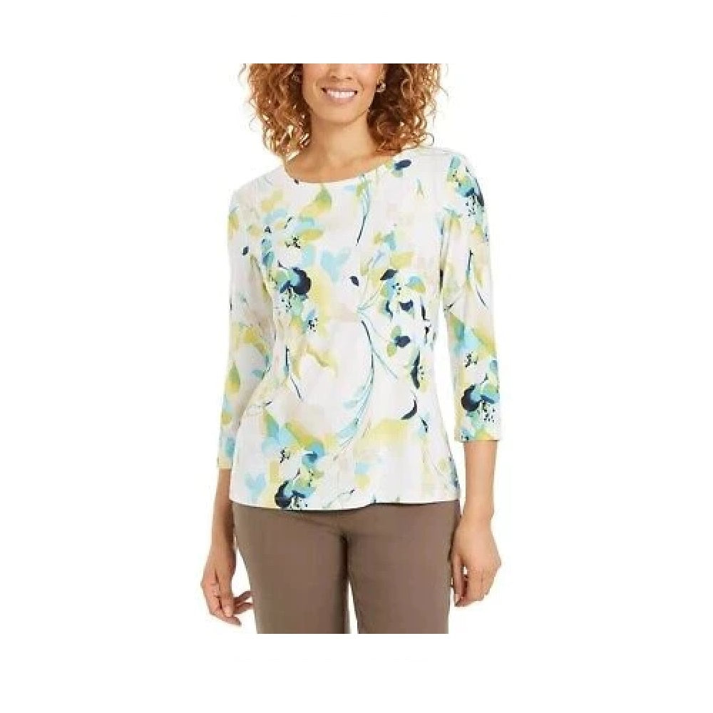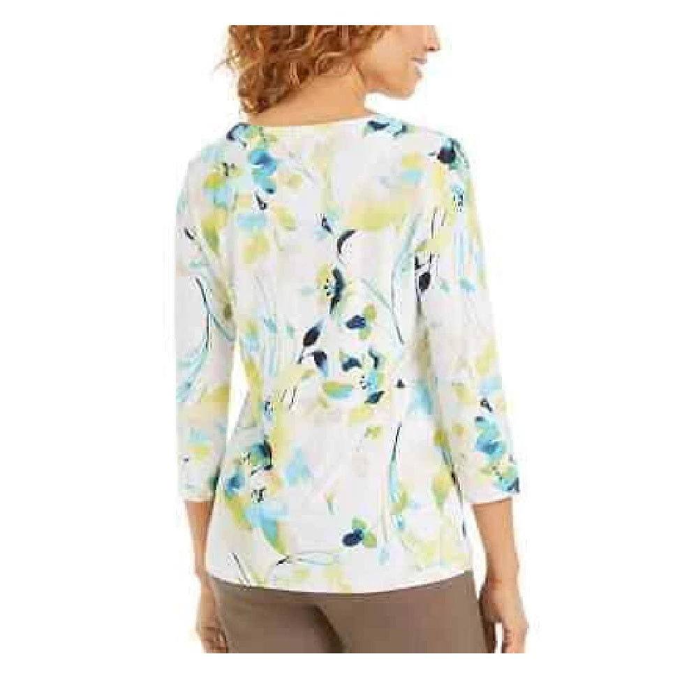 JM Collection Women's 3/4 Sleeve Novelty Printed Jacquard Top Green Size XL
