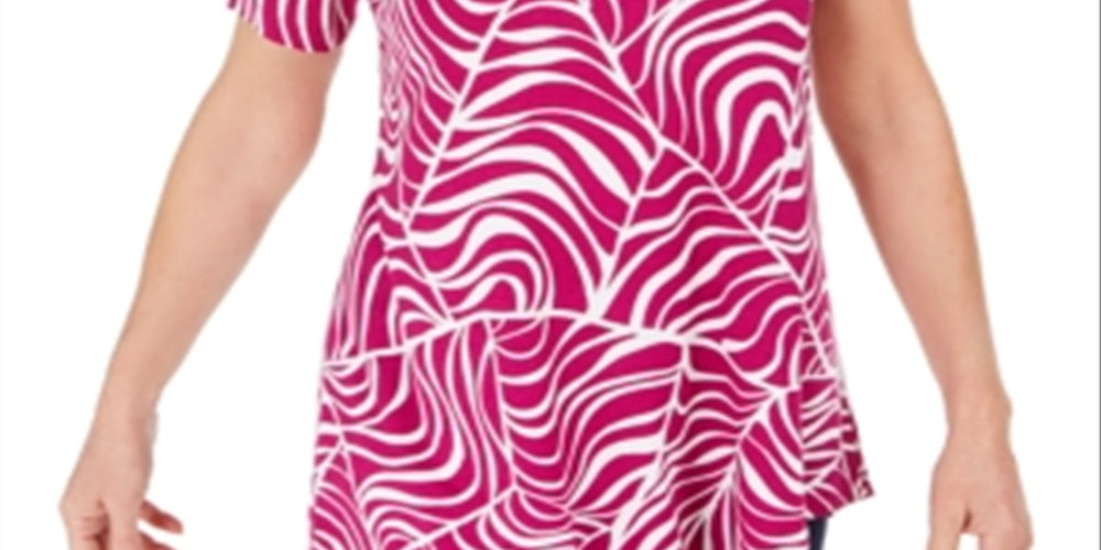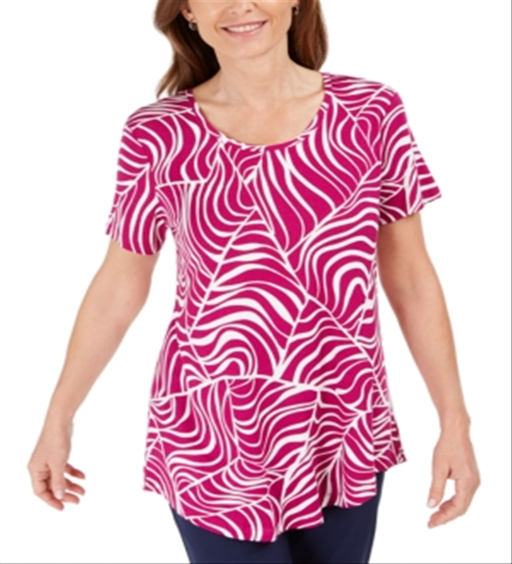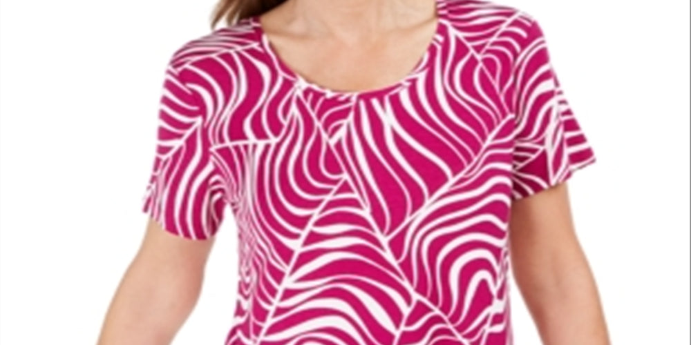 JM Collection Women's Printed Short Sleeve T-Shirt Pink Size Small