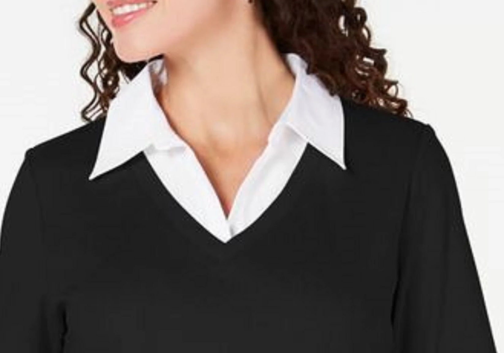 Karen Scott Women's Petite Layered-Look Cotton Top Black Size Petite Large