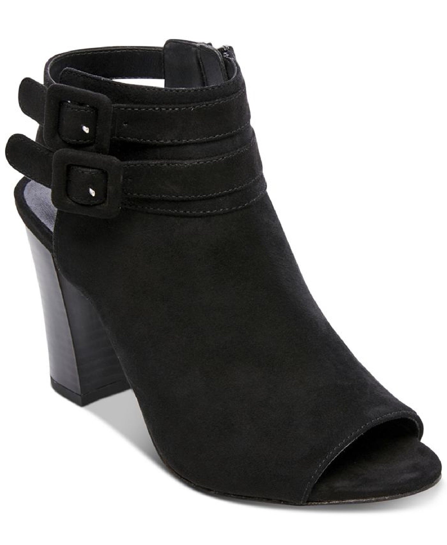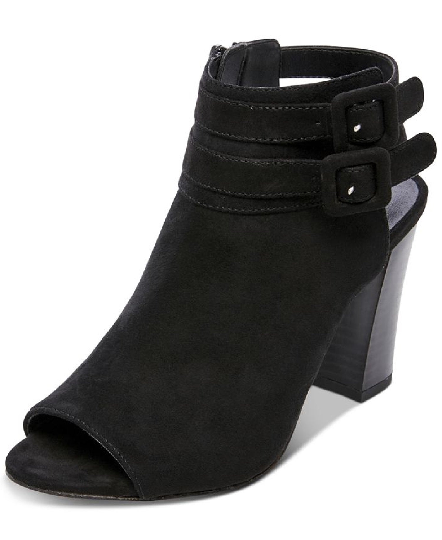 Buckled straps and a chunky stacked heel lend a stylish boost to any look with Madden Girl's Banquet shooties.| 2-1/2 stacked heel| Round-toe slingback shooties with zipper closure| Buckled strap details at ankle| Cushioned insole for added comfort| Suede upper; manmade sole| Imported